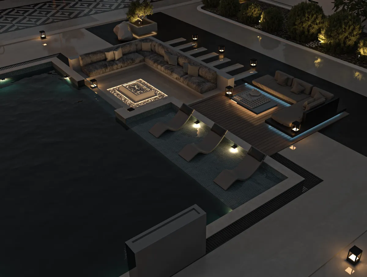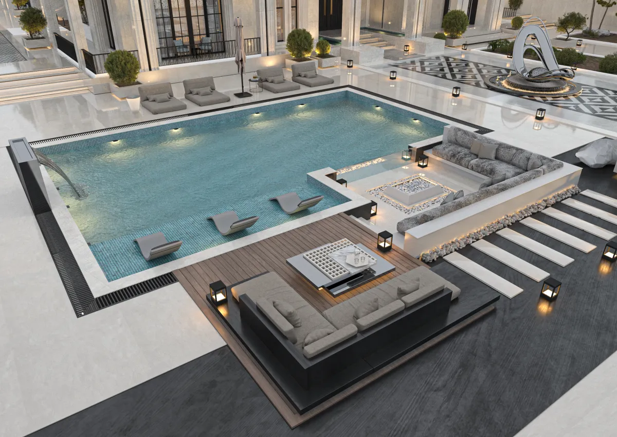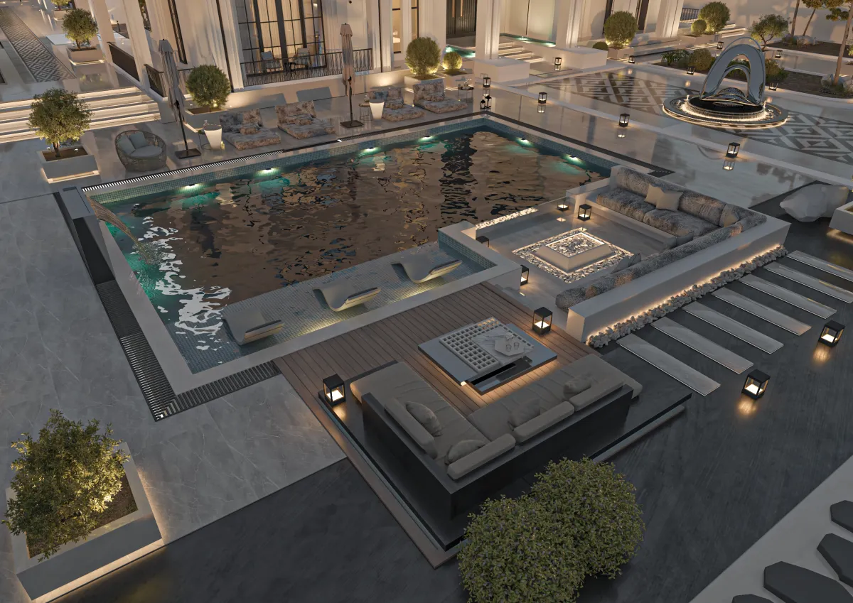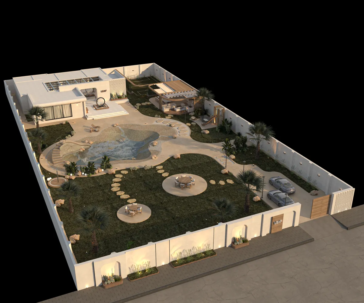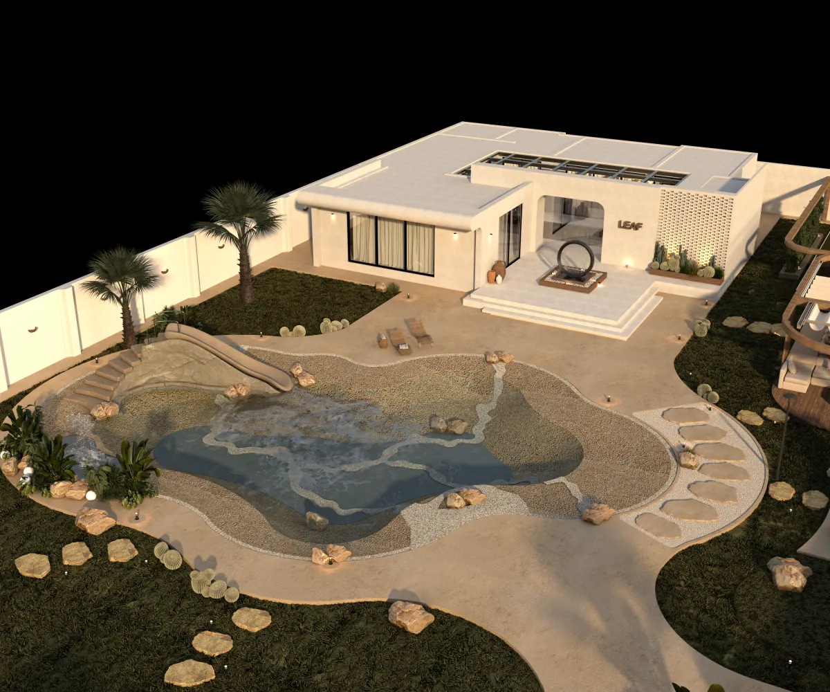 احد اعمالنا في تصميم وتنفيذ منتجع سياحي مع بركة شاطئية الاولى من نوعها في العراق