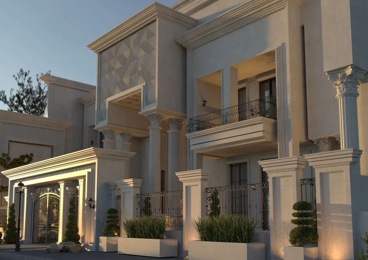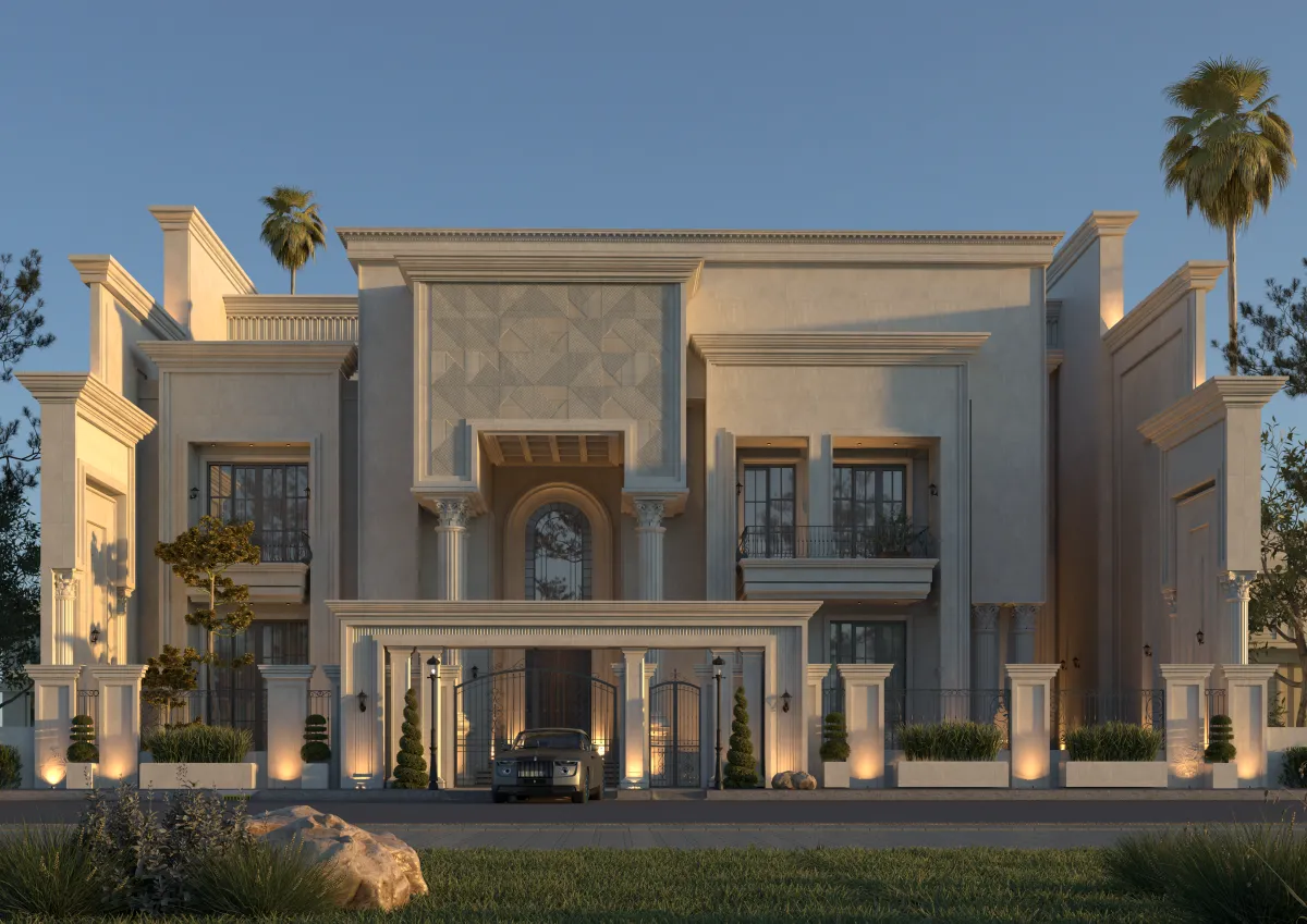 احد اعمالنا في تصميم وتنفيذ فيلا كلاسيك بمساحة 600م2 و واجهة 30م